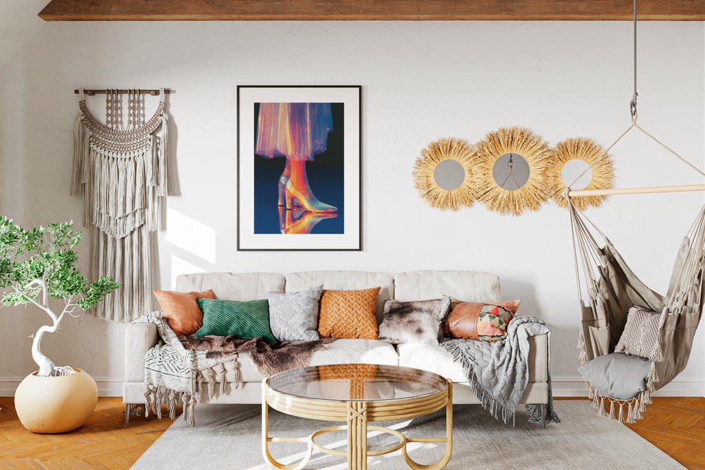 This artwork is a statement piece that adds a celestial touch to modern interiors.